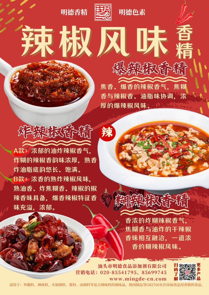 明德辣椒風(fēng)味系列香精  層次鮮明 爆香濃郁汕頭市明德食品添加劑有限公司推出的辣椒風(fēng)味系列香精,涵蓋爆辣椒、炸辣椒、糊辣椒等多種類型。產(chǎn)品風(fēng)味真實,香氣飽滿,適用于調(diào)味品、復(fù)合調(diào)味料、醬料、鹵制食品、肉制品等B端應(yīng)用,幫助工廠快速打造具有記憶點的辣椒風(fēng)味。